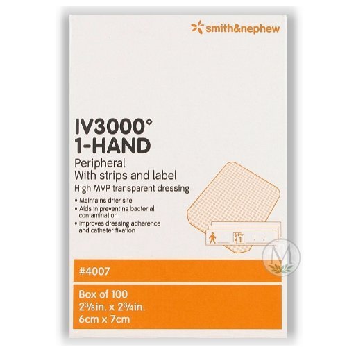 Smith & Nephew IV 3000 1-Hand Transparent Dressings #4007, 2-3/8"x2-3/4", Box of 100
