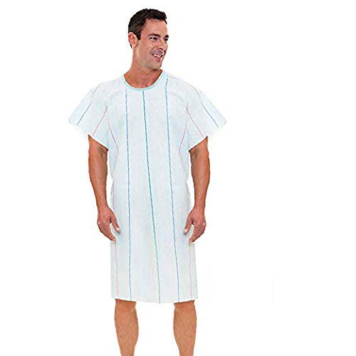 Nobles Angle Back Overlap Patient Hospital Gowns - Color - Multi Stripe Aqua One Size Fits Most Pack of 4