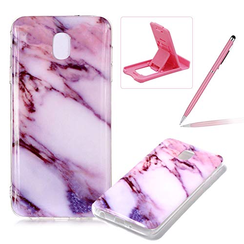 Soft Case for Samsung Galaxy J7 2018,Anti Scratch Cover for Samsung Galaxy J7 2018,Herzzer Stylish Pretty Purple Marble Stone Pattern TPU Bumper Flexible Shock Scratch Resist Rubber Case