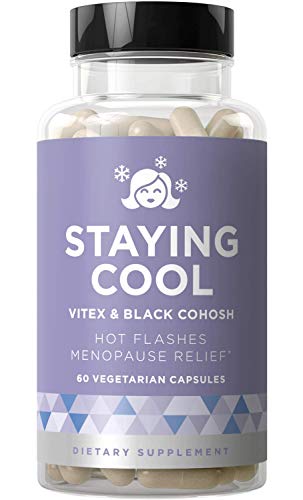 Staying Cool Hot Flashes & Menopause Natural Relief - Hormonal Weight Support, Night Sweats, Disturbed Sleep, Mood Swings --Vitex Chaste Tree & Black Cohosh Pills - 60 Vegetarian Soft Capsules