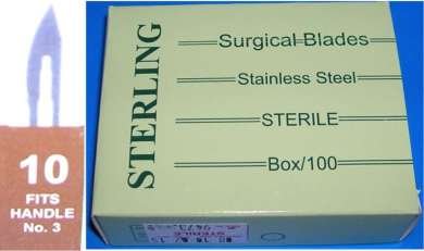 Sterling #10 Surgical Podiatry Blades Scalpels Sterile Stainless Steel -100/Bx- Pedicure