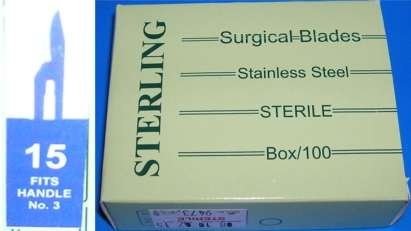 Sterling #15 Surgical Podiatry Blades Scalpels Sterile Stainless Steel -100/Bx- Pedicure