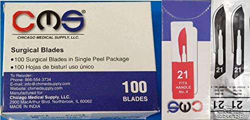 Chicago Medical 21 Surgical Podiatry Pedicure Blades Scalpels Knives Stainless Steel 100/BX Sterile CMS #21 for No 4 Handle