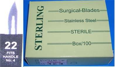Sterling #22 Surgical Podiatry Blades Scalpels Sterile Stainless Steel -100/Bx- Pedicure
