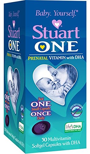 Dietary Supplement Baby. Yourself. br Multivitamin Softgel Capsules with DHA Does Not Contain Fish Oil 2 Just One Small Capsule Once Daily 3 Life s DHA* | Healthy Brain, Eyes, Heart Choosing a prenatal vitamin can be a very important step in family planning. The Stuart brand has been trusted by moms for generations. we have specifically designed Stuart One to meet the needs of the expecting mom. We know 3 important things you look for in your prenatal vitamin are: Size of the Pill 2 Tolerability 3 Complete Formula Stuart One meets your needs with just one small gel capsule, once daily dosing and no fish oil. Our formula includes: Folic Acid 2 Plant Based DHA 3 1000IU Vitamin D We thank you for your continued support and look forward to providing you with the healthy support needed before, during and after pregnancy.* Contains Soy. *Life sDHA is a trademar