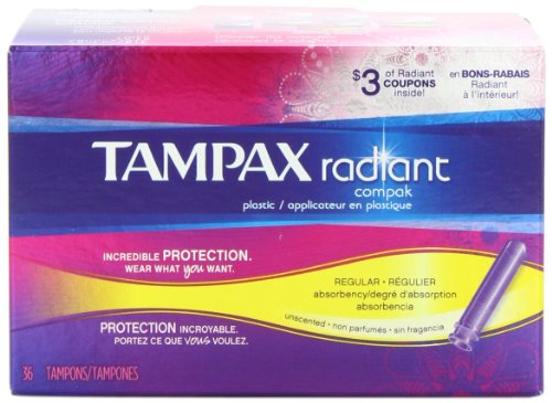 Tampax Radiant Compak Plastic Unscented Tampons, Regular Absorbency, 36 Count