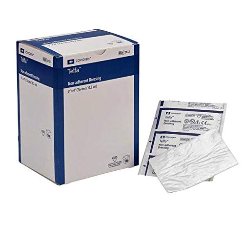 INDICATIONS:Telfa ouchless adhesive dressings. Made of highly absorbent cotton fabric bonded on both sides with perforated non-adherent film. Won't disrupt healing tissue by sticking to wound. Adhesive strips keep dressing intact. Perforated carton for easy dispensing. Individually wrapped. Sterile. DIRECTIONS: Cleanse. Gently clean in and around the area with warm water and mild soap, using Gauze Pads. Apply gentle pressure over the wound to stop bleeding. If redness or swelling occurs, consult a physician. Apply. Apply medication, if required. Cover the wound with Non-Stick Pad to protect it and absorb fluids.Secure. Press Non-Stick Pad with Adhesive Tabs firmly in place. Change daily or when pad becomes wet. also offers a wide variety of excellent covers, tapes, stretch gauzes, and adhesive bandages.