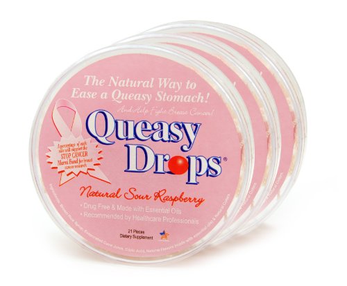 Say goodbye to your queasy and upset stomach while showing your support for breast cancer awareness. Effective for all types of nausea due to traveling, motion sickness, chemotherapy, illnesses, colds and flu, pregnancy, morning sickness, chemotherapy, car rides, airline travel, amusement park rides, dizziness, medications , even anesthesia or post-surgery. Made with powerful essential oils of fruit and plant botanicals that have been proven to relieve nausea. All-natural, completely drug-free and chemical-free so it's 100% safe for kids, adults, elderly persons and pregnant moms. Great tasting, fast-acting and highly effective at combating your nausea and upset stomach with absolutely no side effects. Zero artificial flavors or colors and certified kosher. Individually wrapped for convenience so they are perfect to take along in your purse, computer bag, pocket, backpack, luggage, briefcase, diaper bag, lunch bag or to always keep handy in the glove compartment of your car. Recommended by doctors and healthcare professionals. Three (3) containers of our nausea-relieving lozenges containing the essential oils of sour raspberry; 21 individually-wrapped lozenges per container. A portion of each sale of queasy drops pink goes to support the stop cancer marni fund for breast cancer research. See all three lollies products: preggie pops and drops for strong morning sickness relief; preggie drops plus with 10 milligrams vitamin b6 for extra-strong morning sickness relief; organic preggie pop drops made with USDA certified organic essential oils; queasy pops and drops for all-purpose nausea relief due to sickness, traveling, morning sickness, medications, even chemotherapy and post-anesthesia; queasy drops pink sour raspberry that supports breast cancer awareness and provides quick, strong nausea relief from chemotherapy, anesthesia or cancer medications; and our special line just for kids, queasy pops kids.