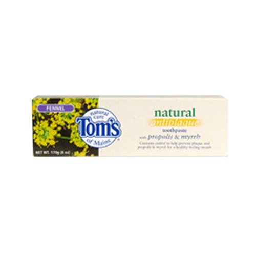 Tom's of Maine Propolis and Myrrh Toothpaste Spearmint. Description: Natural. Fluoride-Free. Antiplaque. Fresh Breath. Spearmint Flavor. Propolis and myrrh leave your mouth naturally fresh. Propolis and myrrh are herbal resins we've found promote a naturally clean, healthy-mouth feeling. Propolis and Myrrh toothpaste fights plaque with regular brushing, and we've added xylitol for great taste. Fluoride-free formula: Some people do not want fluoride in their toothpaste. We produce this toothpaste without fluoride because we respect our customers' diverse needs and interests. What makes a product good? At Tom's, it includes how we make it. No animal testing or animal ingredients. We share every ingredient, its purpose, and its source. Sustainable practices are a priority in every aspect of our business. No artificial colors, flavors, fragrance, or preservatives. We strive to maximize recycled content and recyclability of our packaging. 5% (12 days) of employee time to volunteering. 10% of profits to human and environmental goodness. Free of Fluoride, animal testing, animal ingredients, artificial colors, flavors, fragrance, or preservatives. Disclaimer These statements have not been evaluated by the FDA. These products are not intended to diagnose, treat, cure, or prevent any disease.