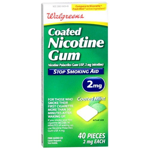 Walgreens Coated Nicotine Gum 2 mg, Mint, 40 ea