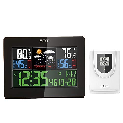 Weather Station Wireless Indoor Outdoor Weather Instruments with Color LCD Screen Thermometer and Moisture Alarm Clock Temperature and Humidity Monitoring for Home and Office