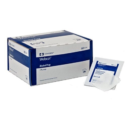 (SOLD BY BOX 200/EA) Webcol Large (2 Ply) Alcohol Preps, 200/Carton. Sterile, nonwoven, two-ply sponges saturated with 70% isopropyl alcohol are designed for moderate cleansing. Individually wrapped foil packets. Large. 200/bx. Brand: Kendall