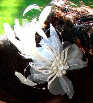 WHITE Vintage Feather Bridal Hair Accent