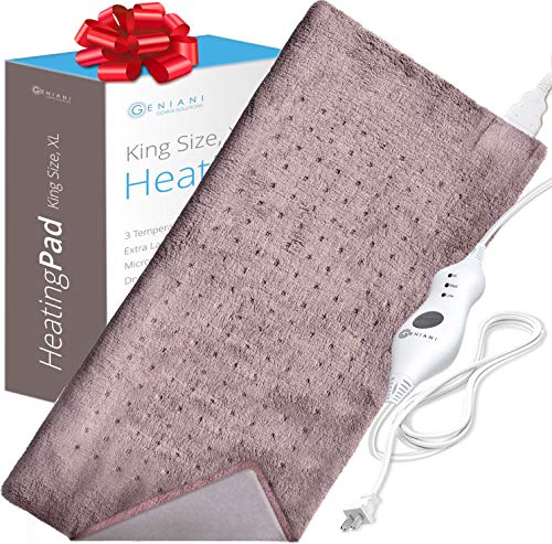 XL Heating Pad - Electric Heating Pad for Moist and Dry Heat Therapy - Fast Neck/Shoulder/Back Pain Relief at Home - 12" x 24", GENIANI (Brown)