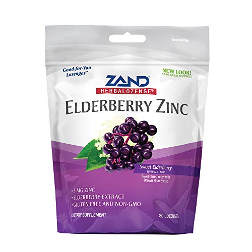 Zand HerbaLozenge Elderberry Zinc | Good-for-You Lozenges for Dry Throats | No Corn Syrup, No Cane Sugar, No Colors | 80 Lozenge Bag