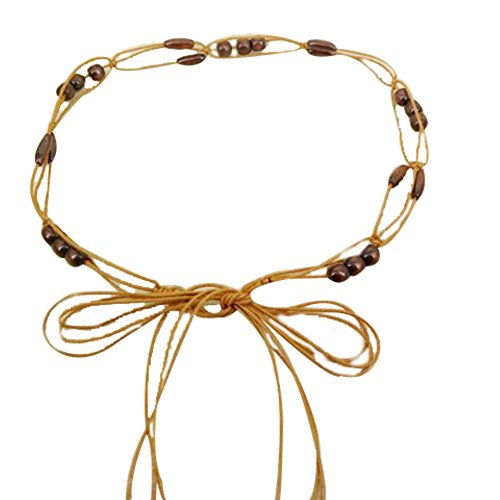 zdfYYkzdf Fashion Women Woven Wooden Bead Wax Rope Tassels Belt Skirt Dress Decorative Belt Camel