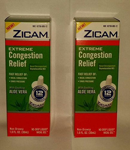 Zicam Congestion Relief- No Drip Nasal Gel- 1 ounce per bottle (2 pack- for a total of 2 ounces) Long lasting 12 hours non drowsy formula.