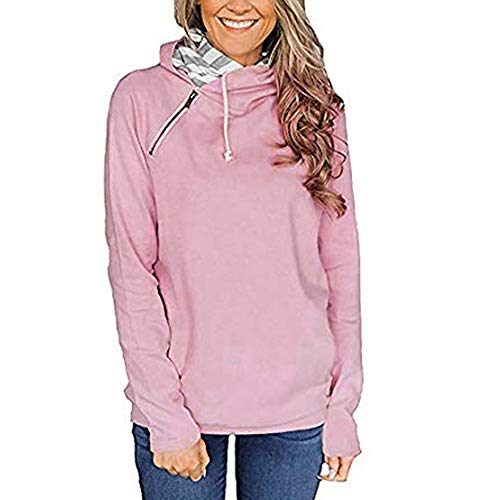 ZUong2 Women's Solid Color Cowl Neck Hoodie Sweatshirt Casual Long Sleeve Drawstring Pullover Hooded Tops with Pockets Pink