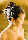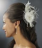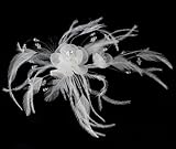 WHITE Feather & Flower Bridal Hair Accent Comb Accesories