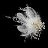 Gorgeous Rhinestone Dazzle WHITE Feather Bridal Hair Comb