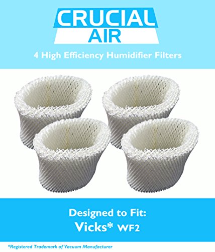 4 Vicks WF2 Humidifier Filters; Fits Vicks V3500N, V3100, V3900 Series, V3700, Sunbeam 1118 Series & Honeywell HCM-350 Series; Compare to Model # WF2; Designed & Engineered by Crucial Air
