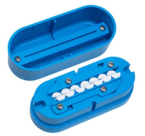 MULTIPLE PILL SPLITTER This device cuts numerous pills in half in one operation. Round or oblong pills are loaded between the spring loaded retainer bars. The cover, with integral cutting blade, is then replaced and pushed down to split all the pills at once. A blade guard provides finger protection. The splitter will accommodate pills 5/32" (4mm) to ¾" (19mm). For use by all those who aim to save time and money by splitting high dosage pills. LIFETIME WARRANTY.