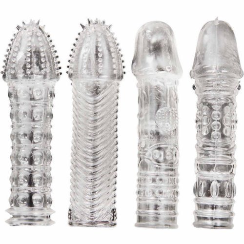 BEST CASE 4 Pcs Difference Condoms, Man's Pride Male Glans Penis Enlargement Extender Crystal Silicone Cockring Condom with Thorn Sex Ejaculation Delay Penis Sleeve Erotic Pleasure Adult Toys for Men