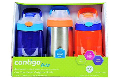 Contigo Kids Autospout Water Bottles (3 Pack – 2 Autospout + 1 Autoseal) 14 Hours Cold
