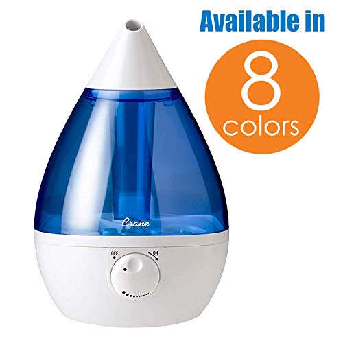 Crane Drop Ultrasonic Cool Mist Humidifier, Filter Free, 1 Gallon, 24 Hour Run Time, Whisper Quite, for Home Bedroom Baby Nursery and Office, Blue and White
