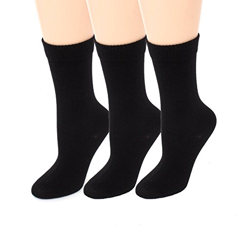 Diabetic Socks | Womens Black Crew 3 Pack | Seamless Toe Size 9-11