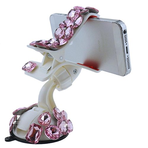 EVTECH(TM) Universal Luxury Transparent Colorful Bling Handmade Crystal Diamond Rhinestones Universal Multi-function Portable 360 Degree Rotating Suction Cup Mini Desk Car Mount Clip Stand Holder Car Windshield & Dashboard Mount for Smartphones Mobile Pho