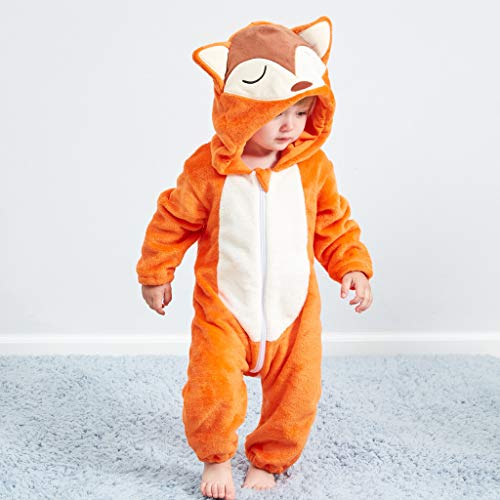 Jshuang (0M-24M) Unisex Baby Hooded Romper Winter and Autumn Flannel Cartoon Animal Fox Style Cosplay Jumpsuit Clothes