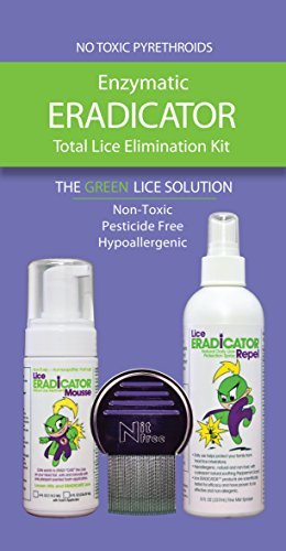 This ERADICATOR lice elimination kit comes with one bottle of our specially formulated Lice ERADICATOR Mousse for lice treatment and removal, one bottle of Lice ERADICATOR Repel to help prevent reinfestation, and a Nit Free Terminator Lice Comb to help remove lice and nits. Lice ERADICATOR Mousse is a natural, homeopathic lice treatment product that is safe for repeated applications and clinically proven to remove irritating and unhealthy head lice infestations. One application of this natural lice treatment gets rid of head lice and the nits because the enzymes in it softens the glue that holds the nits to the hair shaft, allowing them to be easily combed and rinsed away. The resistance factor never becomes an issue because it kills the lice on contact. Lice ERADICATOR Repel is a lice repellent spray that comes in a ready to use bottle. Use this product to prevent lice infestations and to keep lice off. Apply it to the hair and nape of the neck to ward off the insects and help eliminate them. Multiple daily applications are safe for children and all users. Lice ERADICATOR Repel repellent spray is a pleasantly scented formula that contains peppermint oil that is a natural lice repellent. Spray on hair, car head rest, furniture, clothing, and any place where a new lice infestation can be picked up by your child. The Nit Free Terminator Lice Comb has been a favorite of parents, children, teachers and school nurses across the country. The Nit Free Terminator Lice Comb is constructed and designed for easy and safe removal of lice and nits. It is highly polished and has precision spaced, stainless steel teeth that are permanently locked into the sturdy plastic handle. The smooth handle design is rust resistant.