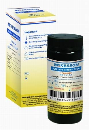 These strips provide test results for the following reagents: Leukocytes, Nitrite, Protein, and Glucose. Features 4 Parameter For use with the McKesson 120 Urine Analyzer (MFR # 121-120). Firm plastic strips featuring 10 parameter reagent testing pads. Test results may provide information about carbohydrate metabolism, kidney and liver function, acid-base balance and bacteriuria. Not made with natural rubber latex. SOLD SEPARATELY: Urine Control - Liquid Dipper 100 Each / Box
