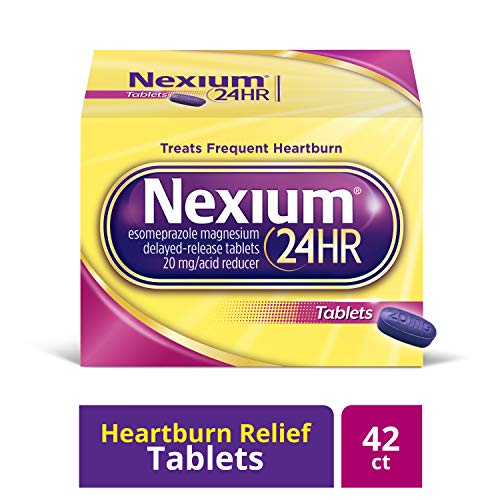Nexium 24HR (42 Count, Tablets) All-Day, All-Night Protection from Frequent Heartburn Medicine with Esomeprazole Magnesium 20mg Acid Reducer