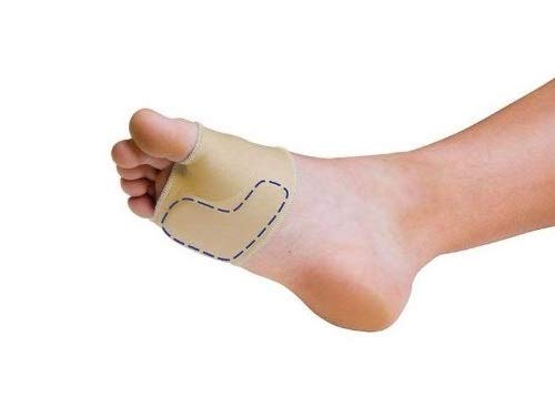 A lightweight lycra foorefoot binder with a soft foam ball-of-foot pad with sesamoid relief aperture. Helps relieve pain and limit pressure & shock underneath the big toe joint (first metatarsal head). Washable and reusable. Measure circumference around midfoot to determine size. Beige, 1 sleeve/pkg.