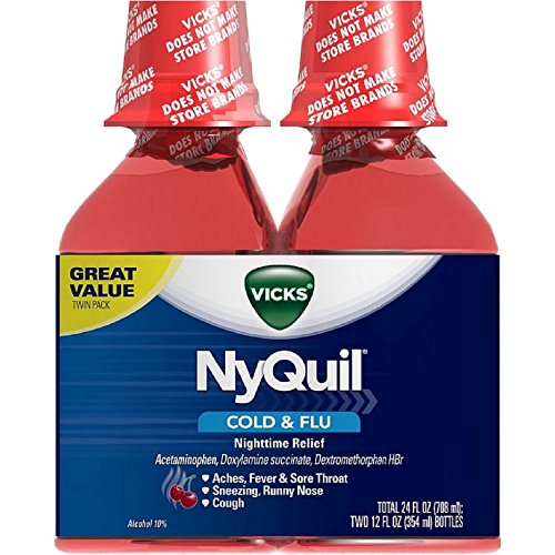 Vicks NyQuil Cough Cold and Flu Nighttime Relief, Cherry Liquid, 2x12 Fl Oz
