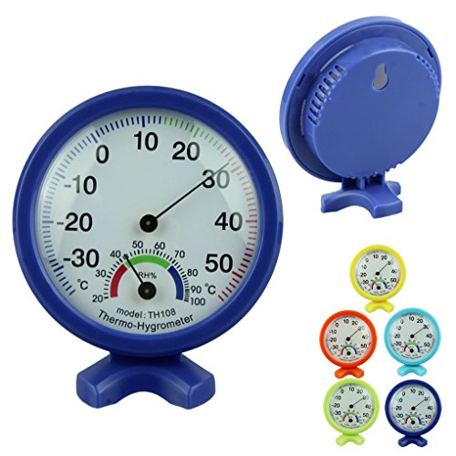 Voberry Newest Cute Pratical Indoor Outdoor Accurate Pointer Display Hygrometer Temperature Humidity Meter (Blue)